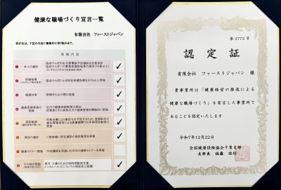 「健康な職場づくり宣言」認定されました